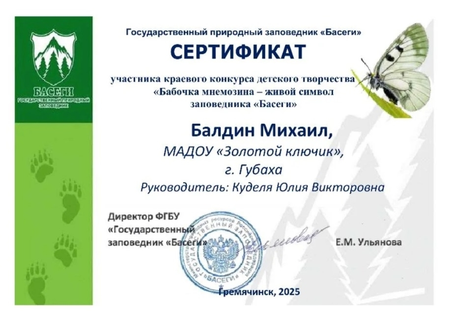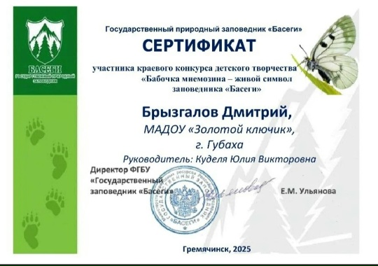 Подведены итоги краевого конкурса детского творчества "Бабочка мнемозина - живой символ заповедника "Басеги"